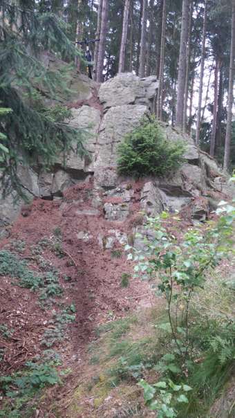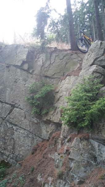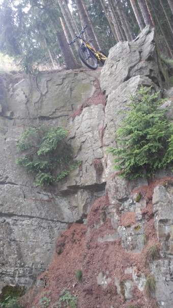 Tak šutr v Rychlebech je proti skalce na fotkách srandička pro děti… Sjet na XC HT se sedlovkou dole by to určitě teoreticky šlo, ale já už bych se k tomu asi vyhecovat nenechal, riziko vážnýho zranění je tam dost velký i na vhodným kole…