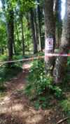 [7–8] Pepkův sjezdík zhruba ze začátku Obřanskýho trailu (u Hradiska) k mostu přes Svitavu u Těsnohlídka (s kvádříkem na konci) pořád obsahuje dva velký padlý stromy a mezi nima naprosto nepochopitelně ne až tak starý koňský hovna. Co tam v tom sklonu dělá kdo s hajtrou?