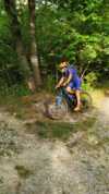 [3] Jak už tu padlo, sjezd přes zříceninu Obřanskýho hradu stojí za vyliž. Jet se to dá, užít asi těžko. Korýtka, suchý, sypký, drolivý. A ještě se tam zespoda drápou turisti (tak jsem to radši stočil na zřícenině do Těsnohlídka a pošetřil brzdy)