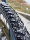 Hřebíky drží, na nerovné zmrzlé šlichtě se kolo nervózně vrtí. Zledovatělé vyjeté koleje určitě nedají, nezkoušel jsem.