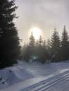 Docela to šlo. Na lyžích se dá jít vedle vychozené ledovaté stopy. Horší úsek byl mezi Martinovou a Ptačím kamenem .