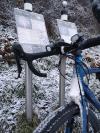 Tak odpoledne už to tak v poho nebylo. Docela to ujíždělo a stahovalo to kola do různých zářezů. Jel jsem to skoro krokem a všechny zatáčky taky. Nestabilní sněholedo břečka.