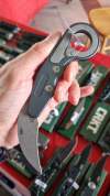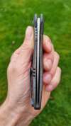 Byl jsem požádán o založení nového vlákna. A rovnou se pochlubím, co mi přinesl Ježíšek. Je to Civivi Mini Bullmastiff v karbonu a damašku. Tahle čínská značka mě teď hodně baví. Jedná se levnější odnož značky WE a to jsou jedny z nejlepších továrně vyráběních nožů, které si dneska můžete koupit. Fakt se směju, když někdo někde píše, že nechce kudlu z Číny. Líbí se mi, jak se Civivi soustředí na to, co je důležité. Všechny kousky, co jsem od nich na výstavách osahal, byly vycentrované, měly dobře udělané pojistky a bezchybný chod, za který by se nemusely stydět ani několikrát dražší nože, dobře vyladěný detent (keramický, stejně jako ložiska) a všechny byly super nabroušené a zaleštěné, na nehtu krásně hladké ostří. Detaily, jako začištění hran atd. pochopitelně není tak dokonalé, jako u dražších kousků od WE, ale jak říkám, ty důležité věci si hlídají. A můj Bullmastiff není výjimka. Ještě bych vyzdvihl výbrus, který je parádně vytažený, ze 3 mm ve hřbetu na 0,5 nad fazetou, což je mezi továrními noži dost unikátní. Většina ostatních nožů, co mám, má nad fazetou o dost víc. Kudla díky tomu moc pěkně řeže a co jsem koukal, tak takhle pěkně mají vytaženou většinu výbrusů. Takže jestli někdo sháníte kvalitní řezivý zavírák se super chodem kolem 2t, určitě se na Civivi koukněte. Třeba tenhle Praxis v damašku je super deal.