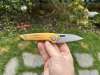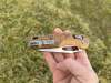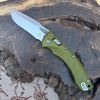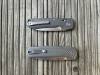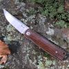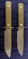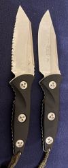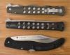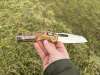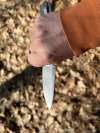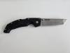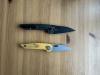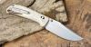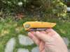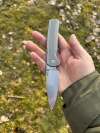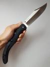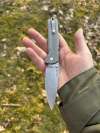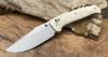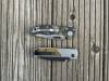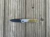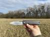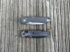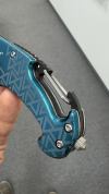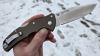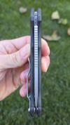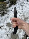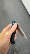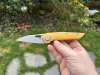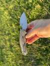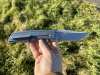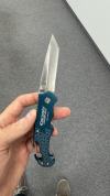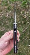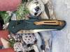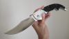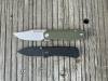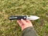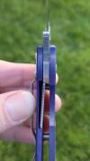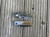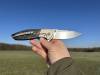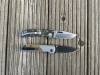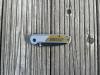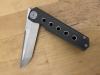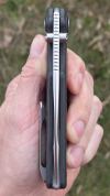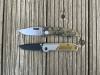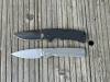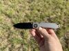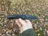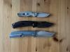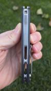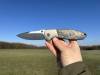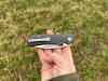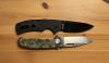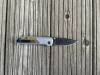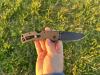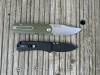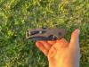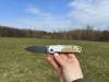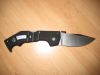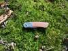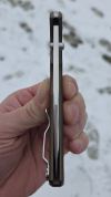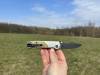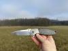 AD20.5 je kudla, kterou navrhl Andrew Demko známý hlavně spoluprácí s Cold Steelem a jako autor jedné z nejlepších pojistek na zavírácích tri ad locku. AD20.5 ale má Shark lock a je to největší highlight té kudly. Pojistka je pevná, obouruká a velmi zábavná. Kudla se dá díky díře a oboustrannému kolíku otevřít nespočtem způsobů (klasický thumb flick, reverse flick, whist flick s povolením pojistky i bez…). Pojistka zapadá absolutně spolehlivě s uspokojivým kovovým cvaknutím a drží jako skála, absolutně bez vůle v kterémkoli směru. Kudla má obecně super chod díky ložiskům a jen tak si s ní hrát a vymýšlet další způsoby otvírání je prostě radost. Dál bych vyzdvihl ergonomii, do mojí ruky sedí jako ulitá, a to i přes absolutně ploché střenky s tloušťkou 10 mm. Klip je funkční, oboustranný, tip up only, ale moc pěkný není. Kudla má ocelové odlehčené příložky a plastové střenky s moc fajn diamond paternem, který dává tak akorát gripu a na luxusní titanové verzi je navíc fakt sexy. Rozumná velikost (8 cm čepel, 19.3 cm celkem), plochost i váha (99 gramů) z toho dělá fajn EDC. Výhrady mám k poměrně krátkému ostří (vzhledem k velikosti ve složeném stavu) a k výbrusu, který je nad fazetou nesmyslně tlustý (0.8 – 1 mm u spičky). Plochý výbrus do 2/3 výšky čepele (byť s rozumnou tloušťkou 3.2 mm) z toho pak dělá spíše robustní, než dobře řezající nůž. Kudla je vyrobená na Taiwanu a zpracování nelze nic moc vytknout, nicméně použitá D2 se mi zdála při broušení i následném používání velice měkká (býval bych se vsadil, že je to AUS10-A). Pokud bych si tuhle kudlu kupoval sám, sáhl bych po verzi s G10kou a S35VN, kterou má knifestock.cz za nějakých 5t, což je fajn cena, když si uvědomím, že tahle plastová s D2 nebo AUS10 stojí od 3 do 4 t. Dál jsou v nabídce moc pěkně titanové kousky s čepelí ze 3V, případně i full timascová verze za nějakých 16t. Takže si vybere opravdu každý, a to je fajn. Ještě je k dispozici sheepfoot čepel, ale ta se mi osobně na téhle kudle vůbec nelíbí, použitý clip point kudle sluší mnohem víc. Takže za mě celkem fajn kudla. Hodně by mě lákala plnotučná verze 20S (čepel 92 mm, 154 g, 20CV, US made), ale tam už cena leze hodně přes 10t, a tak moc ho zase nechci :-).