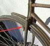 Parada, mezivalecna kola me fascinuji. Dodnes me tezce mrzi, ze jsem si nenechal jedno takove kolo z kontejneru. Behem 90. let a jeste zacatkem milenia s dostupnosti levnych „horskych“ kol v marketech tato kola lide hromadne likvidovali. Zapominaje, ze jim slouzily desitky let kazdodenne do prace po nekolik generaci a casto jim ani po tech desitkach let nic moc nebylo. Pokud kolo nebylo bourane, nebylo tam co poskodit a to malo bylo snadno opravitelne. Stredy byvaly kovane 4hrany, ale byl to jiny standard nez dnes. Mohutne loziska, konuse byly srubovane na osu. Kliky take kovane. Parkrat jsem mel stredy rozdelane. Ram a vidle byly letovany mosazi nebo i stribrem. Vsude pomerne jakostni ocel, beznymi stipackami bylo temer nemozne prestrihnout spici z kola, i soucasne DT Swiss jsou proti tomu blato, nemluve o pozinku. Blatniky zdobene ornamenty, fakt hezka prace. Pozdeji v 50.letech a dal za komancu sla kola do kopru jako vse ostatni, ze 4hranu se preslo na srackove klinky a kliky, co skalpovaly kotniky, vsechno se neustale povolovalo…