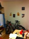 Tak jsem prohrabal disk, abych nasel fotky z ulozeni kol behem studii na cvut kolejich (squatech) a aktualni, uz kultivovany stav na byte :D Koleje byly dobry v tom, ze se tam neresilo nejake bahno a bordel z kola, protoze tam byl bordel vsude, na byte uz je to horsi a jsem hlidany pritelkyni. Nastesti muj kout sdili i kocour a jeho pisecne wc, kde dela hrabanim vetsi bordel nez ja.