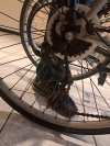 na starém kole mi vletěl do špic zadní přesmykač a celé řazení je tak zrušené (vizte foto). A tak jsem si říkal, že bych nechal ozubená kolečka a řetěz zkrátil na délku prostředního. Myslíte, že by to takhle šlo? Nebo se bude řetěz posouvat dále od kola k těžšímu převodu? A pokud ano, neznáte nějaký fígl, jak tomu zabránit?