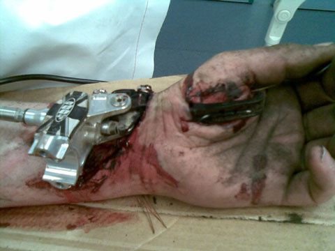 Jakože moc pěkný..a ty co píšou že není možný aby prošla brzdová páka rukou tak se velmi mýlí.při jízdě v bikeparku pod ještědem si kamarád vrazil brzdovou páčku do stehna a udělal si tam asi 5–6 cm škubu loubka na brzdovou paku na doraz .