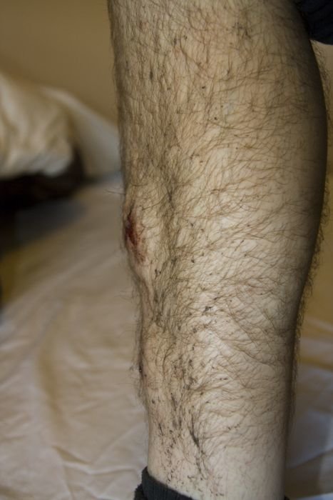 na jaře se mi stalo něco podobného, odlétl mi kámen od předního kola a trefil přímo do holeně. Měl jsem sice malou, ale asi tak centimetr hlubokou dírku, a nejspíš naštíplou kost. Ale nic jsem s tím nedělal a jezdil dál a nějak to zarostlo