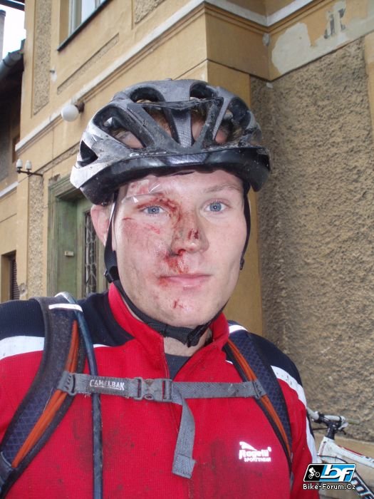 Obočí bylo zaleůpený tak „na rychlo na dojetí. :) nejvíc mě štve, že jsem sebou sekl až dole na dojezdu, když jsme neodhadl jeden skok a dopadl na přední a pak přímo na hlavu. Navíc hned duhej den z pětidenní "dovolené“.