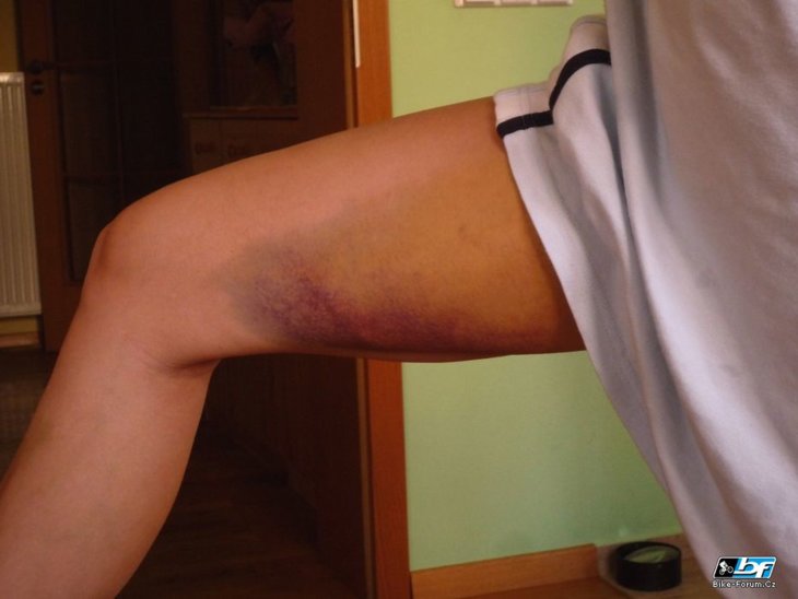To klidně mohlo bejt tříslo,za týden udělá gravitace svý a celý to sjede dolů.Přeji brzké zmizení modřiny a žádné následky.