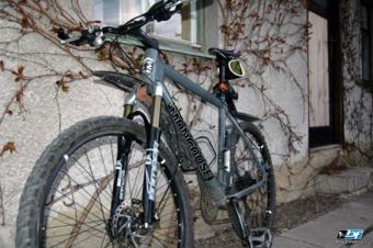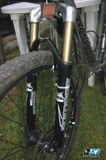 Copak serepetičky ty mi nevadí, ale ta plandající hadice od přední brzdy mě dráždí. Měla by jít zacvaknout do toho držáku zepředu levé nohy, nebo alespoň chytit el. páskou. Jinak jí zapomeneš někde v lese na větvi :-)