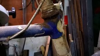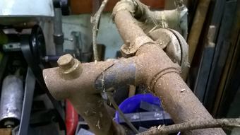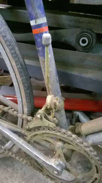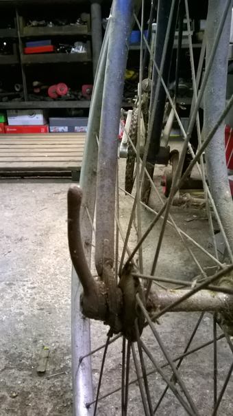 Tak by to měl být rok 51 nebo 52. Kola původní nejsou, mělo to původně galusky a ty se na vesnici kde to jezdilo asi moc neuchytily tak je někdo vyměnil za modernější plášťová. Sedlo bych řekl že je tak půl na půl, poradím se sedlářem co s ním a uvidíme. Jinak rám bych chtěl zachovat tak jak je, jen očistit, odstranit některé části od jiných barev něž původních a přeleštit. Ostatní části zabavit rzi a pak je nějak chemicky ošetřit, chrom, nikl… zatím nevím co tam původně bylo. Z pedálů mám radost, protože na většině kol z té doby jsem je opravdu nikdy neviděl. Velká škoda je, že někdo uřízl původní držáky na pumpičku, aby tam mohl dát delší.