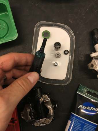 Naprosto normálně stačí vytáhnou ty střeva z těla pedálu, do něj nacpat trochu víc vazelíny a vše zpátky dotáhnout. Pokud je na ložiskách vakl, tak ten před tím seřídit. Stará vazelína se tlakem prolisuje ven a utře se. Práce na 5 minut/oba pedály.