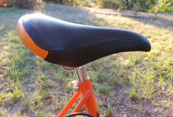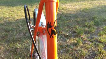 Trochu jsem si s tim vyhrál. Umotal jsem vlastní gripy a sedlo do barvy. Rám je stará eska v novém kabátě z práškové barvy. Požadavek byl košík, blatníky a levně.