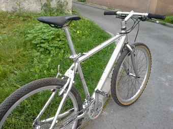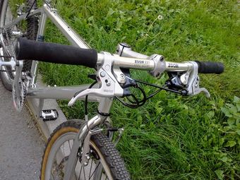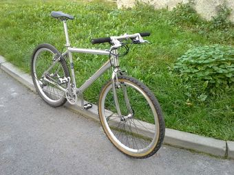 Další veterán, který jsem koupil za pár šlupek společně s KHS, dal jsem ho kompletně do vůně a bude viset v bytě. Rám je nic moc, ale jsem unešený se zachovalé sady STX RC, je krásně zpracovaná, čelisti brzd jsou krásné a jako komplet to působí moc pěkně. Líbí se mi, že kolo je jako celek komplet stříbrné.