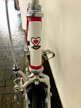 Rám jsem zakoupil již takto přelakovaný, tak jsem ho pouze osadil dobovými komponenty. Po čase jsem se dopátral, že rám pochází z kola Colnago Sport. Jednalo se o kvalitní kola za dostupnou cenu = na běžné úrovni jiných výrobců:) a s pověstnou geometrií Colnago.