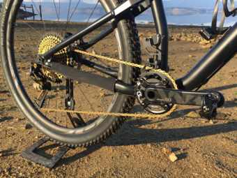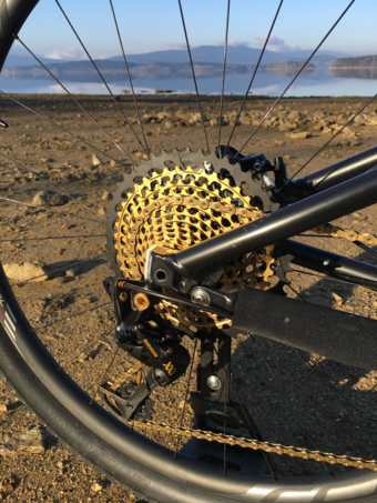 Krásné, lehké, černé, co víc chtít :) ten zlatý pohon na úplně černém kole docela razí, možná bych tam ještě doplnil nějakou zlatou drobnost, nebo zlaté nápisy, ale není to nutnost. Že je to hlína mi vůbec nevadí.