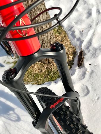 RS tlumič má o 100g méně než origo Fox. Na sadě je to skoro 150g. Kola 1668g, pláště 1570g. Menší kotouč, stealth osa a 15g na brzdách :) Lyrik má nějakých 2250g. A navíc jsem bez pedálů :)