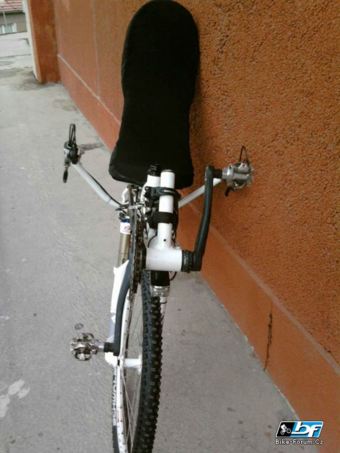 Vloni jsem potkal němčoura, ten si něco podobnýho postavil sám. Na DuaAce, Rohloff, Hope, prostě lahůdka, systém zatáčení na principu skateboardu, chvíli mi trvalo, než jsem to pochopil