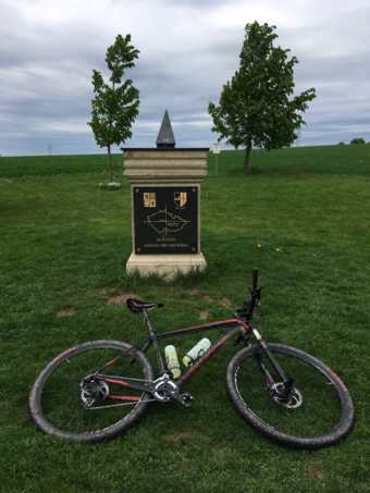 Po oklice na zelený jsem se napojil na modrou a po ní dorazil do cíle a to do Číhoště, do středu naší země.
