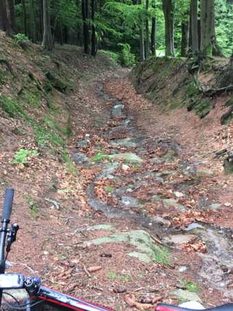 Já to jel po velkejch deštích, takže klouzačka a větve hodně dole, od listnáčů, tak jsem se dost hrbil:-)