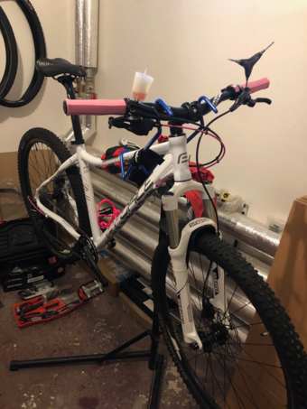 Škoda té barvy košíku, kterej se asi sehnat v té starorůžové nedá – nebo jestli to nevyřešit obráceně – košík nechat a sehnat růžové fluo gripy – ty se sehnat určitě daj, aby to opticky „zařezávalo“ )