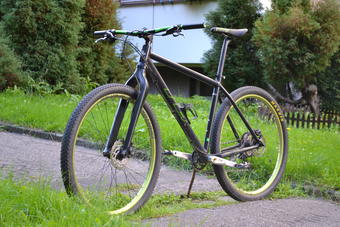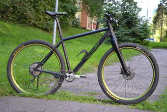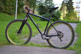 Kolo určeno na cestu do práce 36 km denně celoročně, proto pevná vidlice, žádný servis a v zimně to netrpí. Kolo je postaveno ze zbytků doma, kliky, brzdy, přehazovačka a řazení. Říditka, přectavec, gripy, řetěz, převodník aliexpres. Mám tam pohon 1×10, převody stačí na cestu do práce a levný provoz. S kolem jsem spokojený jedeto skoro samo :-)