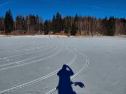 Nádherný sjezd! celých 1200m dolu. Tady cca v 500metrech. Opět teplo, sluníčko, rozhýbávám klouby.