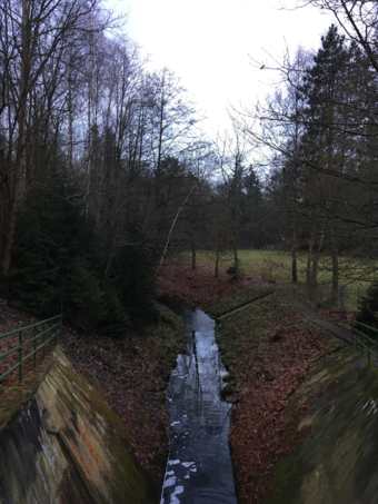 Odtokové koryto pod hrází vodní nádrže Nová Říše.