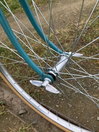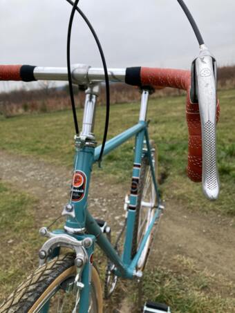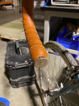 To jsem tak brouzdal po internetu a koupil si za 300kč 3ks torz favoritů a na nejlepším rámu se jal skládat trochu použitelný kolo. Měl jsem skladem sedlo, koupil omotávky, pláště, pedály a nakonec usoudil, že bude dobrý koupit i nová kola, aby se na kolo dalo spolehnout. Samozřejmostí jsou nová lanka, bowdeny a nějaký kraviny. Dopředu jsem zvolil jeden tác a vzadu je pětikolečko. Pak jsem čistil, leštil, skládal a jako třešničku na dortu si vytočil zátky do řidítek :)