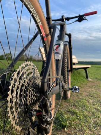 Chtěl jsem si udělat radost, tak jsem si postavil kolo. Dlouhodobě neprahnu po fullu, takže hardtail byla jasná volba. Chtěl jsem něco lehkýho svižnýho, což zatím kolo skvěle splňuje (10,6 kg) :-) Na mých 71 kg a 183 cm je to podle mě ideálka, jsem moc spokojenej. Taky přechod z 2×10 na 1×12 mi zatím vyhovuje, nepozoruju žádnou potřebu „mít toho víc“.