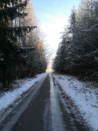 Dal jsem si na konci listopadu závazek, že dokud nedokončím hranici 6.000 km, tak se nebudu holit. No a když jsem se ráno vykulil z postele a koukám ven, na teploměru –6 a jasno, tak si říkám, že by to šlo. V týdnu mi přišel plášť s hřeby od Schwalbe a dnes se to prostě hodilo. Sundávám i přední synovo kolo (zadní už mám půjčené) a obouvám tuhle libovku. Nazutí šlo úplně bez nářadí, což jsem byl celkem překvapený. Po cca 10 minutách je kolo připraveno k výjezdu. Vzorek budí respekt, ale to je u tohoto obutí účel. Zarostlý, jak poustevník, vyjíždím kolem poledne, vyzbrojen termoskou a dvěma proteinovými tyčinkami. Výjezd na silnici ok, plášť bzučel, hučel, lidi se otáčeli, ale bylo mi to jedno. Vjíždím na uježděný sníh, plášť drží stopu, i brzdy poslouchají. Vjíždím na led, což už tak super, nebylo na ledu se projevuje absence toho druhého. Pak už to šlo, řidítka jsem držel tak křečovitě, že mě po půl hodině začaly brnět ruce, dávám pauzu, pořizuju fotky a takhle ještě asi 5×. Na konci vyjížďky, podél slavné D1 musím několikrát slézt, klouzalo to jak sviňa a na kolo se nedalo ani nastoupit. Na uježděném sněhu jsem si byl už celkem jistej, ale i tak poslední kopec před domovem, který jsem dolů sjel, tak nahoru ne, volím souběžnou silnici a na cyklárnu se napojuju, až na rovném úseku. Dojíždím domů, s dobrým pocitem, že jsem splnil svůj cíl, od teď už je vše jako bonus ;)