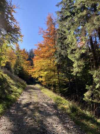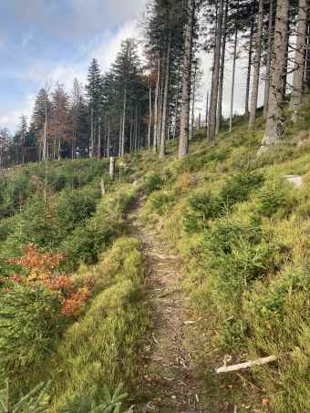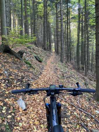 Vyšlo to pěkně. Zřejmě tam po ty 3 týdny, co tady pršelo v podstatě nepřetržitě, bylo srážek míň. Vlastně až na svážnice, kde probíhala těžba, bylo relativně sucho. Je tam fakt nádherně. Kopce hodně přísné, na druhou stranu lepší jeden kopec na hodinu, než tisíc drobných brdků.