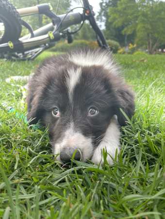 Cyklista: Teď necelých 5 měsíců… denně 5–6 km, postupně navyšujeme. Člověka to nutí chodit, což je super! Chytré to je, o tom žádná! Sedni, lehni, pac, „hajfaj“, pozdrav!, uměl ve dvou měsících. Strašně rád hraje se zavřenýma dlaněma a pamlskem – ukáže si, ve které ruce to je. Při krmení vydrží sedět i minutu u misky se žrádlem, než řekneš volno… Dneska jsme našli novou zábavu – ukážeš mu piškot když sedí, řekneš zůstaň, piškot položíš někam po baráku a on ví jenom kterým směrem to bylo a hledá.