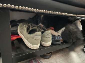 Absolutně ho nezajímá naše „krmení“. Když jíme, zaleze si do klece. Co mě šokovalo bylo to, že se sám od sebe naučil s malou hrát na hoňku. Nechápu jak to pochopil, ale oni si normálně předávají babu. Ona ho dožene, chytí ho a on se pak honí za ní dokud ji neštípne zubama do nohy. Pak otočí a zdrhá před ní. Kdybych to neviděl na vlastní oči, nebudu tomu věřit!..... Na venčení si štěkne u dveří a sám si jde na zahradu. Udělá co potřebuje a vrátí se. A co je naprosto dokonalé, že se naučil na tu klec. Dneska po procházce jsme byli všichni v kině, došli jsme po třech hodinách domů a spokojeně tam chrápal. Je tam i v noci a bere to tak, že když ho tam zavřeš, nemusí nic řešit – neslyší, nevidí – je to jeho prostor a nic mu tam nehrozí… Nevymiňuje si pozornost, mazlí se jenom tehdy když sám chce. Když se mu takhle věnuješ, tak o něm nevíš třičtvtě dne. Zaklepu: drží se „smečky“, když ho pustím na terasu, nezdrhne.