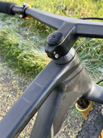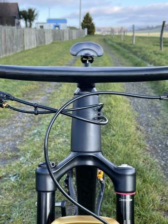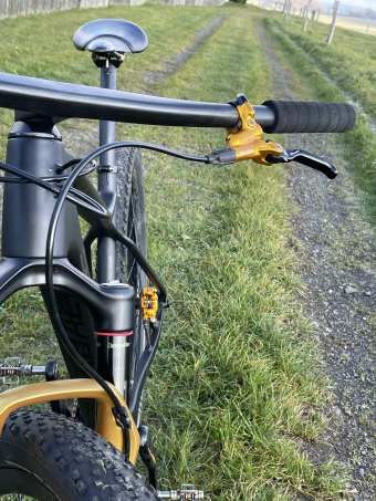 Nelibi se mne to, hlavne lak na vidlici vypada divne. Velka plocha zlate a jeste v jinem odstinu nez brzdy. Hmotnost je paradni. Zeptam se, zene vyhovuje tvarem to sedlo?