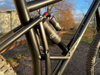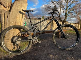 Zadní stavba i přes rozměry biku je parádně tuhá. Kolo zatím ježděno pouze „okolo baráku“. Na zadní a do vzduchu to chce trochu víc snahy, ale je to prostě klidný a stopu držící autobus = přesně tak jsem to chtěl.. Už se těším na trail :).