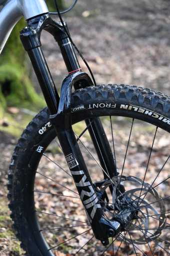 Geometrie není nijak radikální – 64.5°, 460mm reach v Mku a 435mm chainstay – kolo je pěkně hravé, obratné, pružina neskutečně žehlí a přitom jde kolo moc ochotně do vzduchu. Co musím vychválit je DB Kitsuma tlumič – 4 točítka jsou fakt super, chod jde naladit přesně podle představ. Zkoušel jsem i progresivní pružinu, ale v druhý půlce zdvihu mi přišla až moc aktivní, takže jsem nakonec skončil se standardní 400lb. Za zmínku stojí taky brzdy Formula. Za 200e výborná koupě, síly mají na rozdávání a dávkovatelnost taky super (vs např. 4pístky Deore). Trochu zklamání je naopak sedlovka PRO Koryak která měla vakl snad hned po vybalení. Co by mohli u Airdropu zlepšit, je ochrana rámu. Nedodávají vůbec nic, takže na spodku je Zefal guma a pod řetězem neopren na sucháč, nicméně dost přemýšlím o VHS slapper tape.