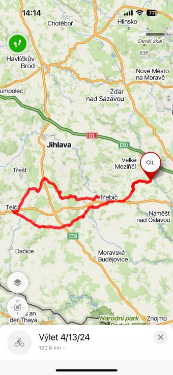 Chtěl jsem do Telče jet až v květnu, ale namlsal mě místní vasour1988. Stovka je doma. Hned po čtyrech kilometrech od vyjetí mě praskl drát na zadním kole, důvod do teď nechápu. Tyto dráty nejdou ukroutit, Tak jsem ten prasklý drát omotal kolem sousedících drátů bezpečně, aby nebyl nějaký problém. Tento rok je kolem mého bydliště spoustu uzavírek a objíždek. Cestu do Telče jsem volil po vedlejších silnicích, protože jsem chtěl navštívit jeden lovecký zámeček v lesích a po cestě byl takový vodopád a ten jsem musel vidět. Byla to moc prima jízda. V Telči jsem navštívil místní ranč. A pak hurá se najíst a potom na zmrzlinu- to se musí. Cesta zpátky byla po hlavních silnicích, ale provoz skoro žádný o táhlé kopce s nízkým sklonem nebyla nouze. Celou tour mě zlobily mapy.cz nefungoval stopař, nepočítal se čas. Po nějaké době tam něco naskočilo, ale nevím jestli celkový čas je pravdivý. Pokud zde Kotwík napíše, že v Telči nic není, není to pravda je tam plno zajímavých míst i kolem tohoto města, stačí je jen objevit. A jednou jsem v Telči potkal: celebrita to nebyla, určitě nemá profil na bike foru, ale …… (identitu této osoby si nechám pro sebe). Tak pro Diveržáka si asi nechám zaplést nová kola na stávajících nábojích, které toho víc vydrží. Nebo by bylo finančně výhodnější koupit sadu dvou zapletených kol? Co myslíte bikeforáci? Do kol bych chtěl investovat tak max. 10k Kč. Už to fotím iPhonem 15, kvalita fotek je větší.