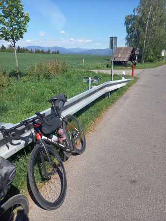 Zastávky akorát na párek, vodu a venčení. Celý den je celkem hezky, odpoledne jedna bouřka, která nás naštěstí zastihne na benzince.