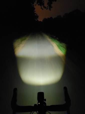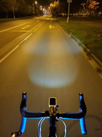 Magicshine Evo 1300, tlumený mód světla 20%, žádné oslňování protijedoucích