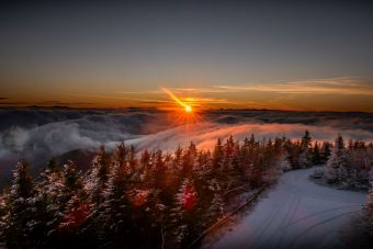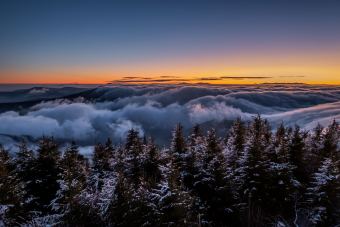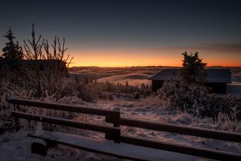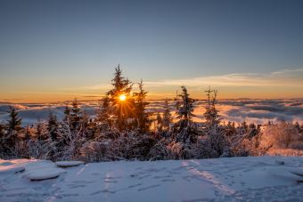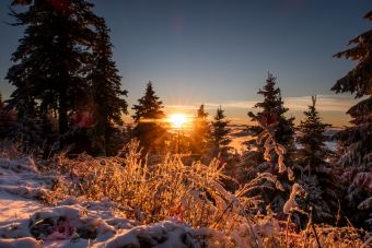 Sobotní ráno a první sněhová pokrývka na vrcholu Lysé hoře. K tomu povedený východ Slunce, směrem na Slovensko to dnes vypadalo neuvěřitelně.