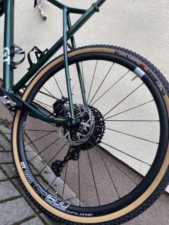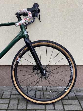 Během čekání na krabici s Gradem jsem přemýšlel, jak to uchopit. Nechat ho tak, jak je, a jezdit, nebo kromě rámu vyměnit kompletně všechno a poslat to vlastnostmi úplně jinam? Zůstalo to někde na půl cesty. Po první jízdě mi bylo jasné, že výplety půjdou jiné, stejně tak pneumatiky. Vážím cca 115 kg a šířka 37 prostě není pro mě – na horším povrchu silnice byla jízda znatelně namáhavá a v lese to byla vyloženě nouze, obzvláště po tom, co jsem zhýčkaný z širokých plášťů Ronina, které mají skutečnou šířku na ráfku skoro 51 mm. Rychlostní rekordy netrhám, jezdím čistě pro zábavu, a když mohu jet lesem bez většího omezování, je to přesně to, co mě baví. Silnicím se snažím co nejvíce vyhýbat kvůli provozu. Výplety od DT Swiss a Tufo Swampero o šířce 44 mm jsou pro mé potřeby a větší rozlišení jízdy od Ronina ideálním kompromisem mezi pohodlím, rychlostí a odolností. Rám pojme v rozměru 700c šířku pláště až 50 mm, pořád tedy případně je co nového zkoušet.