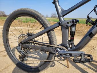 Co se komponentů týče, vybíral jsem mezi mixem Shimano XT/SLX a Eagle Transmission, ale T-Type mě fakt zaujal, tak proč ho nezkusit. Zatím fajn, určitě lepší než Sram NX. Základní Pike nevadí, oproti Judy nehorázný skok a případně se dá upgradovat. Sram DB8 mají dost gumové páky. Nejvíc zamrzí váha, na „donwcountry“ nic lehkého, ale tak co už. Budu se s tím muset smířit.