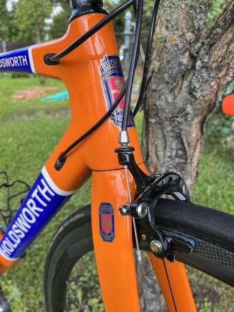 Rám a sada bazarové, zbytek ze šuplíku nebo z Bareše (záplety byly hned od začátku určené na tuhle stavbu, jen jsem tehdy ještě neměl vhodný rám). Nové jsou v podstatě jen omotávky, lanka a řetěz. Pořád je to trochu retro, ale oproti mým dosavadním strojům je to obrovský skok dopředu.