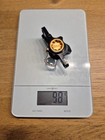 Tady jen pro zajímavost 2 pístový třmen. Zkusím ho skamarádit se Shimano pákou, ale hádám, že na 99% to bude fungovat.