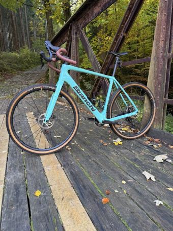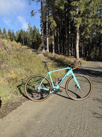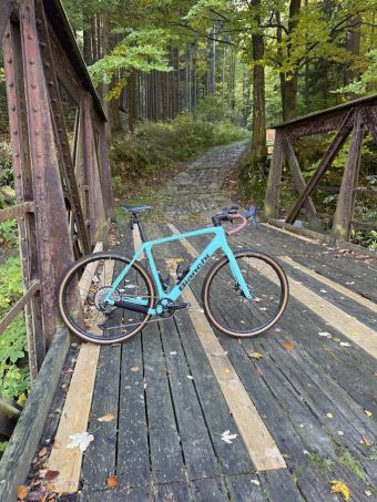 Bianchi a celeste – tady je svět ještě v pořádku – do dneška rád vzpomínám na svoje silnice ( jednička a zimák na fotce ) a klidně bych si jako návrat ke značce dovedl představit právě takového gravelíka, jako je ten Tvůj…