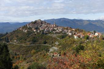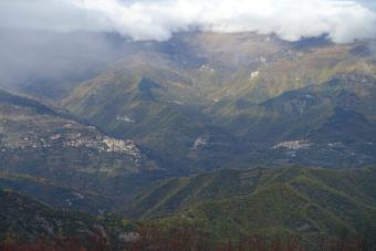 Pohled do údolí Argentina, zleva Triora, Corte, Andagna.