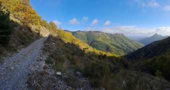 z Gouty vede štěrková cesta "Alta via del Monti Ligure variante"...